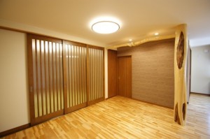 普段は開けっ放しで広々と。閉めれば客間に変身。