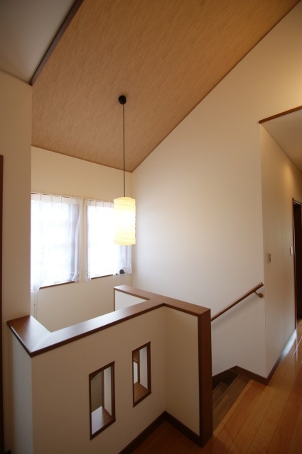 2階のホール天井部は広がりを与える為に斜め天井としました。