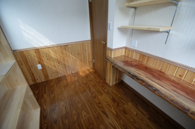 書斎のカウンターテーブルはブビンガの耳付一枚板を採用!